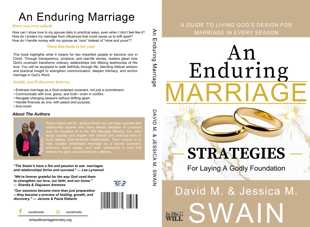 Pastor David and Dr. Jessica Swain are marriage coaches and relationship experts who have shared decades of covenant love. As founders of In His Will Marriage Ministry, Inc., they equip couples and singles with biblical and practical tools to build lasting, God-centered relationships. Their mission is to help couples understand marriage as a sacred covenant, embrace God’s design, and walk victoriously in love that reflects His glory and endures for a lifetime.